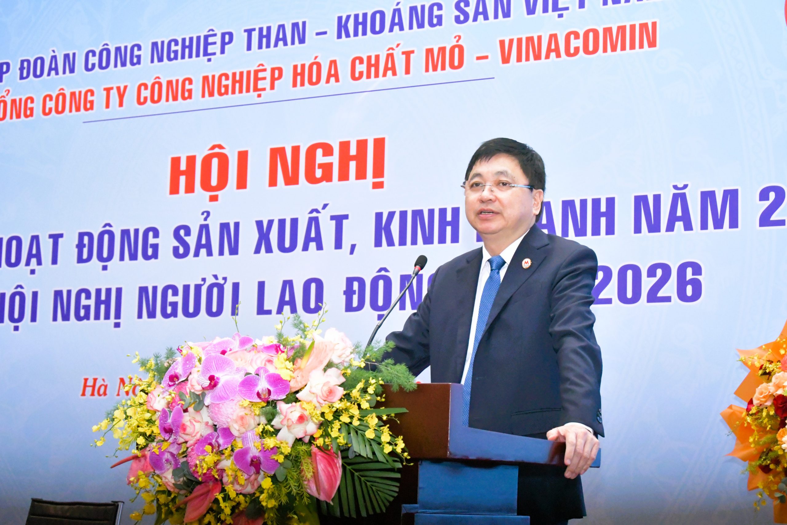 Phát biểu tại hội nghị, Đ/c Nguyễn Quốc Hưng – Chủ tịch HĐTV TCT đã trân trọng tiếp thu và lĩnh hội ý kiến phát biểu chỉ đạo rất trách nhiệm, sâu sắc của đồng chí Nguyễn Tiến Mạnh – Phó TGĐ Tập đoàn TKV. Ban lãnh đạo Tổng công ty sẽ thể chế hóa thành những hành động cụ thể trong năm 2026.