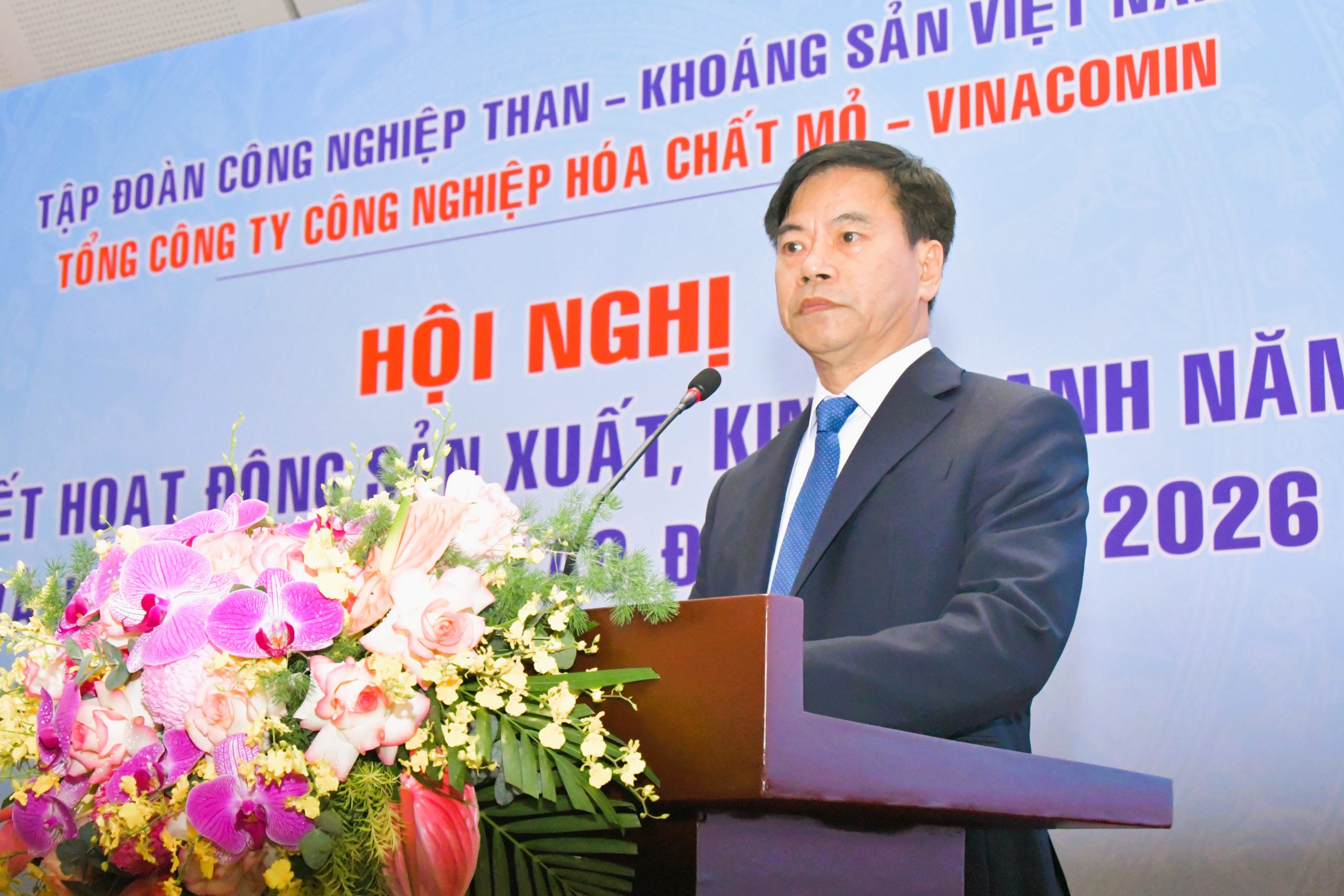 Phát biểu tại hội nghị, Đ/c Nguyễn Quốc Hưng – Chủ tịch HĐTV TCT đã trân trọng tiếp thu và lĩnh hội ý kiến phát biểu chỉ đạo rất trách nhiệm, sâu sắc của đồng chí Nguyễn Tiến Mạnh – Phó TGĐ Tập đoàn TKV. Ban lãnh đạo Tổng công ty sẽ thể chế hóa thành những hành động cụ thể trong năm 2026.
